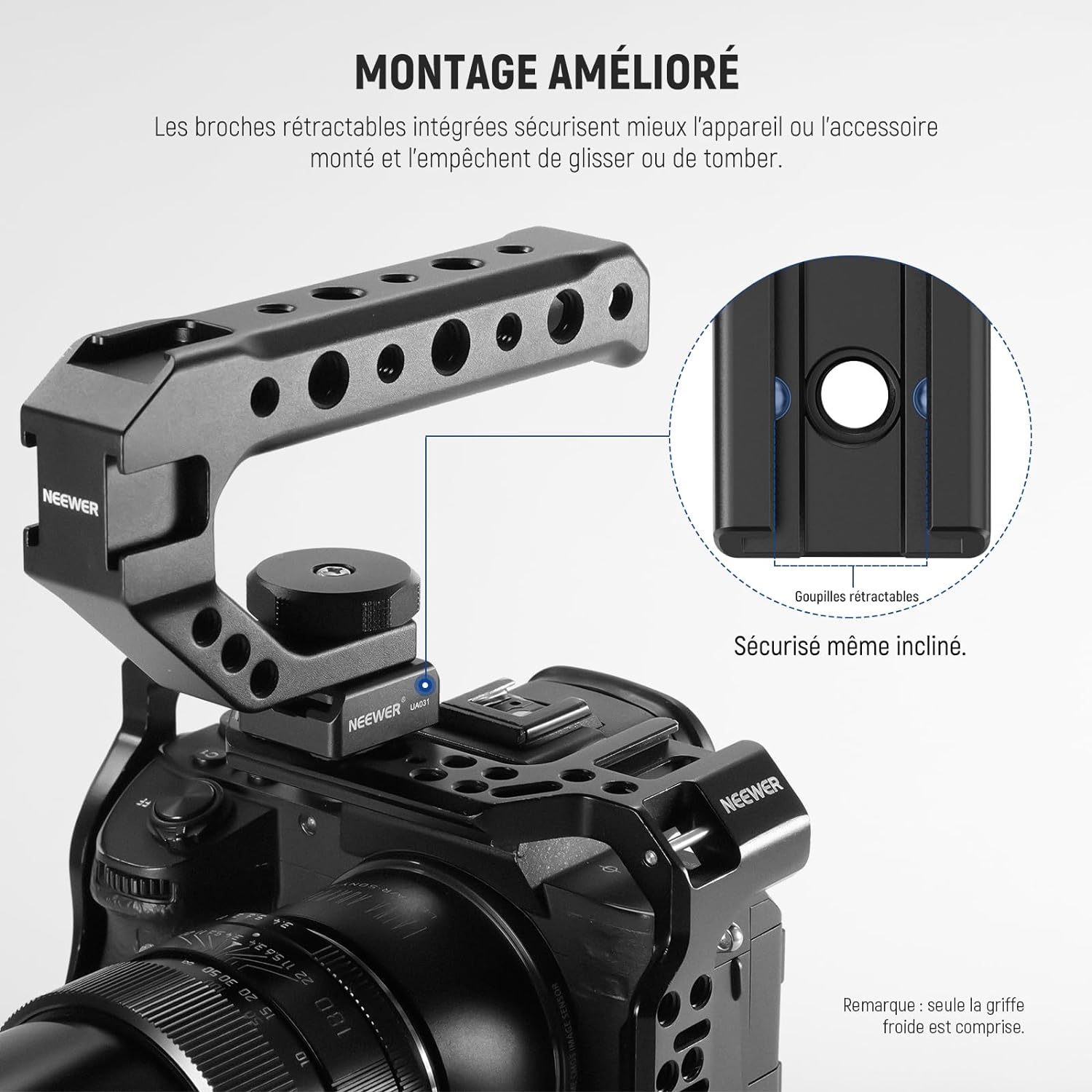 - Design antidérapant amélioré - équipé d'une épingle de sécurité et de deux coussinets en silicone en forme de croix sur le dessous pour augmenter la friction entre le support de chaussure d'accessoires et votre appareil photo et éviter les tremblements indésirables pendant la prise de vue