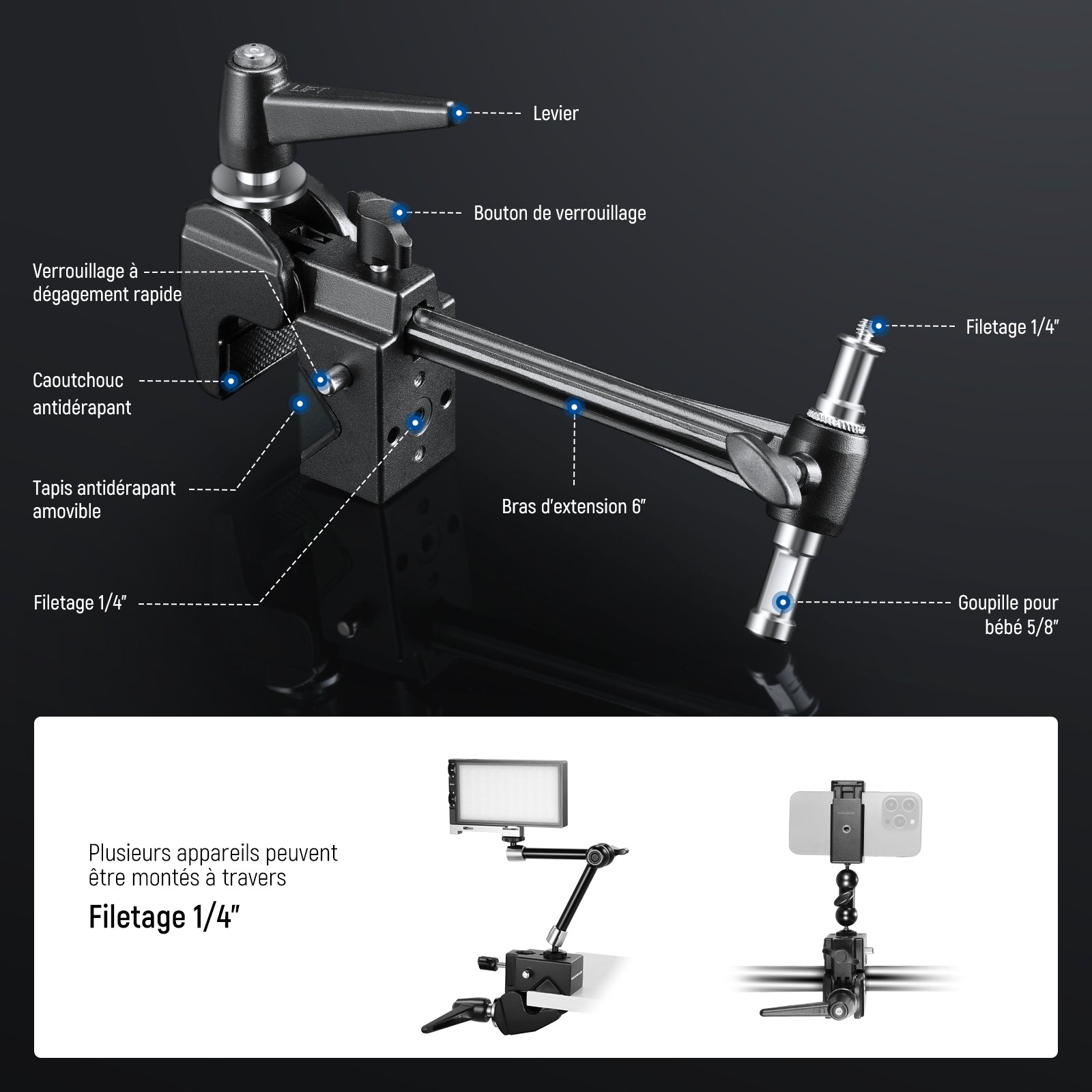 NEEWER UA048 Super Clamp avec Bras d'Extension de 6"