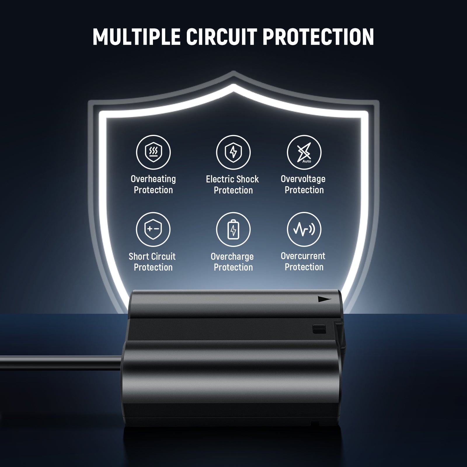 - Fully Decoded with Integrated Protection System- The fully decoded dummy battery makes sure that there will be no pop up alerts interrupting your creation sessions. An advanced protection system can effectively prevent overcharging, short circuits, overheating, overcurrent, overvoltage, and other potential hazards.