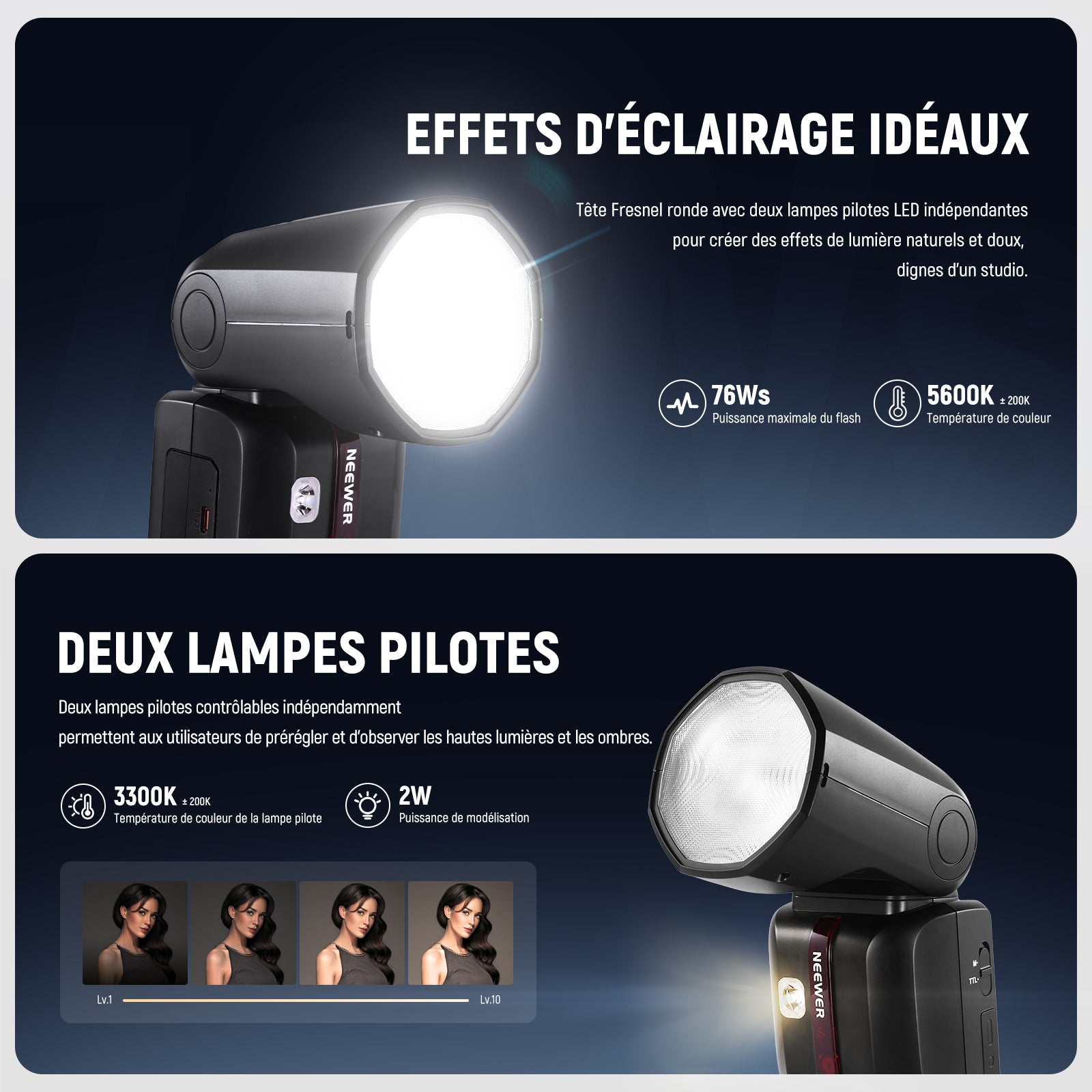 - Puissance maximale du flash : 76 W·s