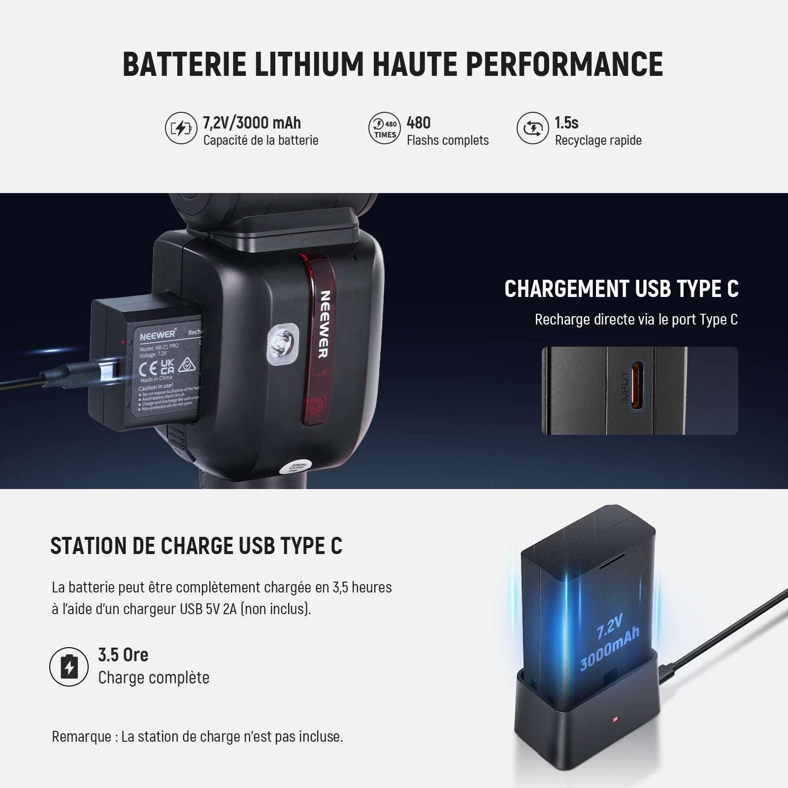- 【Batterie 3000mAh et recyclage rapide】 La batterie lithium 7,2V/3000mAh offre 600 flashs à pleine puissance, un temps de recyclage rapide de 1,5s et une durée d'éclair de 1/180 à 1/20000s. La batterie se recharge complètement en 2,5 heures avec un chargeur USB 5V 2A (non fourni). Kit d'éclairage flash NEEWER idéal pour les créateurs de contenu et les influenceurs, indispensable pour les séances photo en studio, les photos de produits, etc.