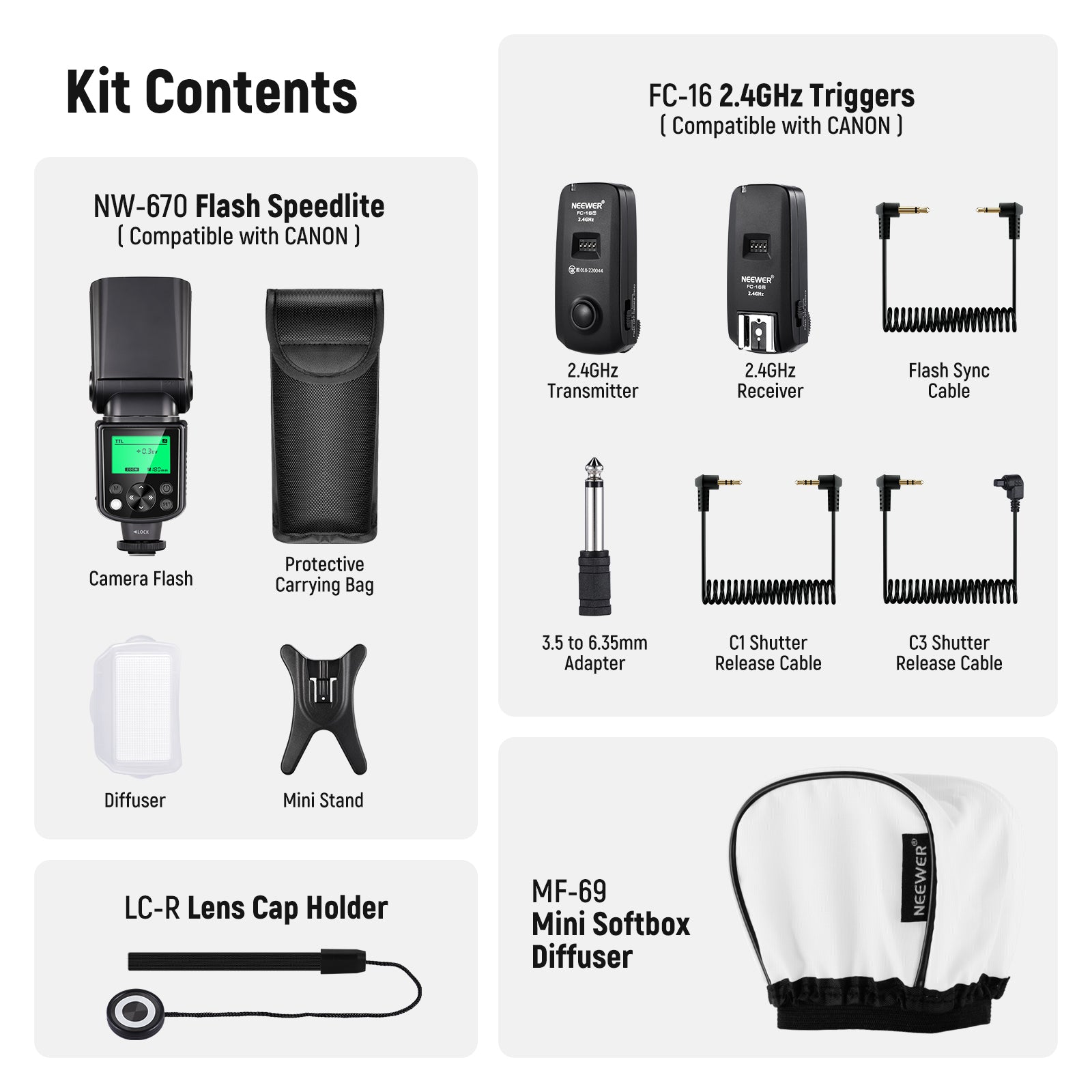 NEEWER NW670 TTL Speedlite Flash Kit For Canon DSLR Cameras