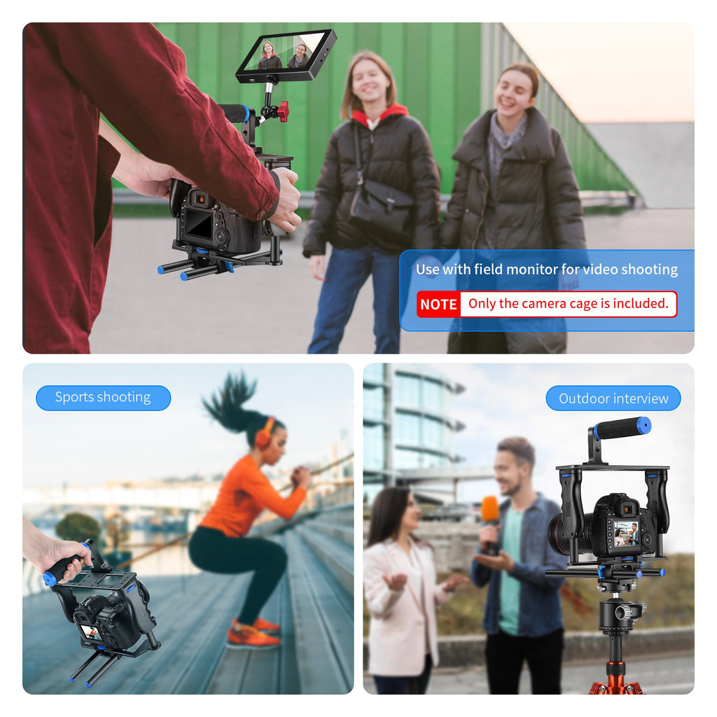 - 【Montage Pratique】 La cage de la caméra dispose d'une vis moletée intégrée de 1/4" qui vous permet de monter et de démonter votre caméra rapidement sans outils. Le rembourrage en silicone stabilise votre appareil photo contre les oscillations et le protège des rayures.